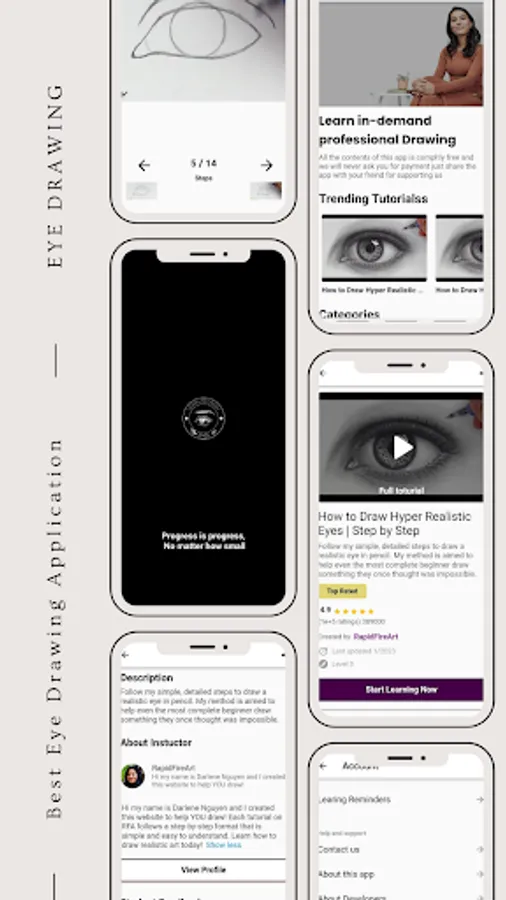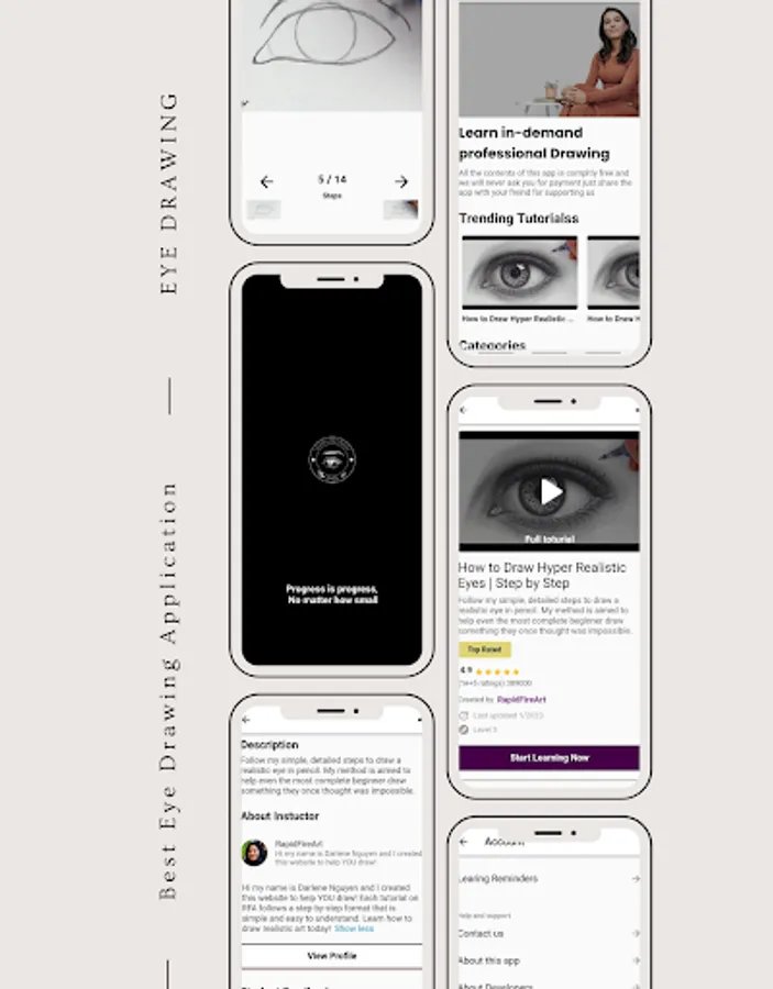 This app is a free app for learning eye drawing. It is designed for the purpose of turning your learning and practicing journey more disciplined and convenient as all the things you need to know for drawing eyes are arranged here, in one place. Moreover, we focus on just one topic (eyes), which makes your learning more focused and you learn all about eyes, and master it once for the rest of your life. Plus, you can track your progress by marking finished after you practiced each aspect of drawing an eye. we appreciate it if you support us by introducing this app to your family, friends, and those who need it.