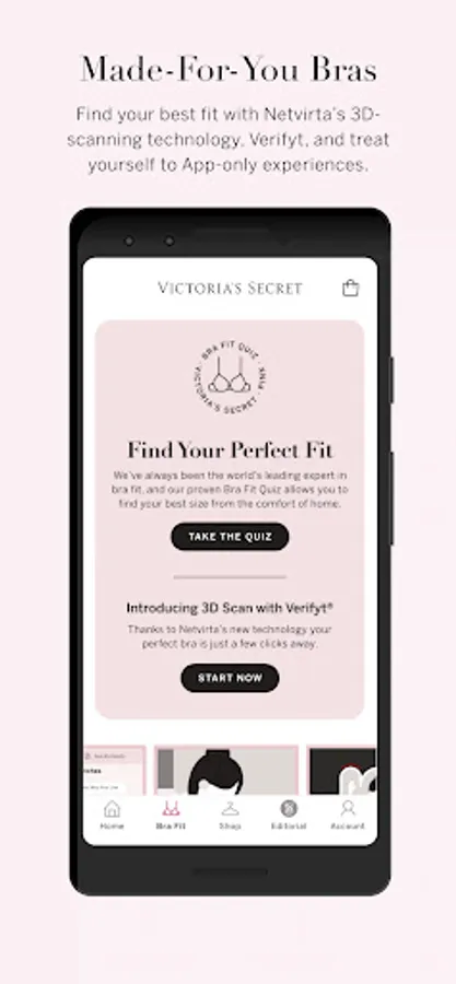 Welcome to the Victoria's Secret App: your go-to destination for discovering new trends, exclusive offers, and the latest and greatest content like Verifyt, Netvirta's new 3D-scanning technology, which helps you find the best bra in just a few clicks.