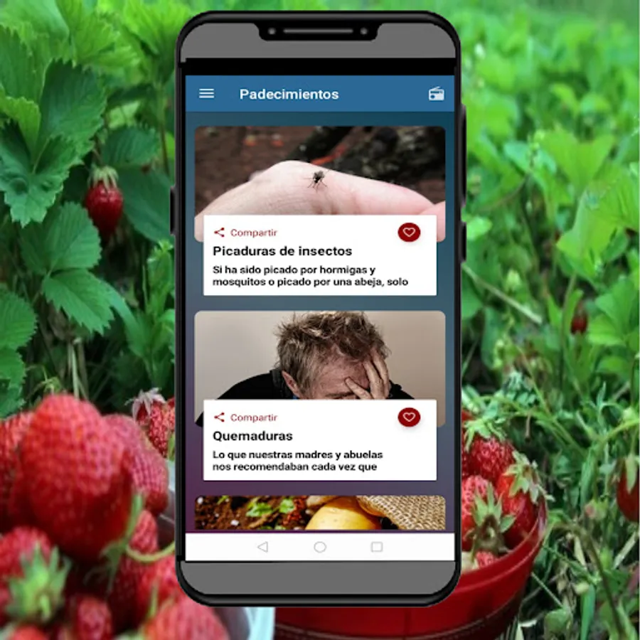 Mobile devices are the most efficient and fastest way we have to find and have practically "at hand" a solution to a health problem such as a burn in the kitchen, an insect picket, a cold, cough, etc. It is very frequent that the natural elements to relieve pain and improve a painful or annoying accident, we find them in our same house, in our pantry. Or if not, obtain the leaves or parts of plants to create the natural remedies, we can do it with relative ease and at a very low cost.