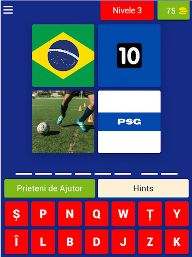 The aim of the game is to guess the footballer from the four images displayed on the screen. Each picture shown will give you a clue about the footballer's identity and you have to use them together to guess correctly.