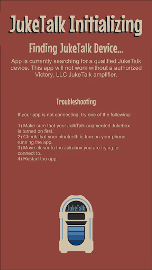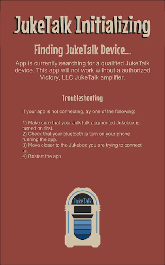 The JukeTalk app provides wireless remote control of Power, Volume, Reject, and Mute from your device.