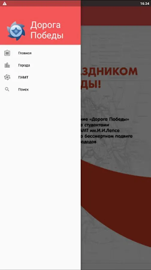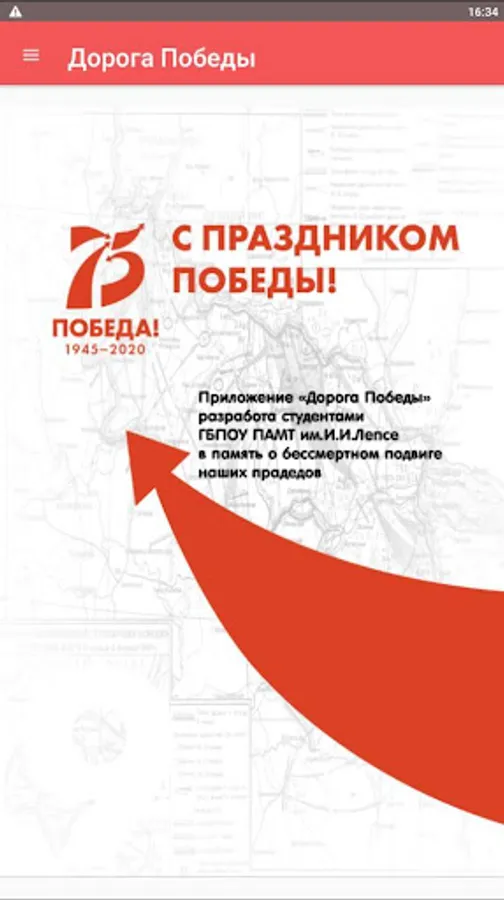 The Victory Road app was created in the year of the 75th anniversary of Victory in the Great Patriotic War. It tells about the participants of the Great Patriotic War, employees and graduates of the Pavlovsky Automotive Mechanical College PAMT them. I.I. Lepse, as well as employees of the evacuation hospital No. 1473 located in the PAMT building. The application is a digital analogue of the numerous pillars of the "Immortal Regiment" campaign. In the future, it is planned to expand the geography of the application by adding new participants to the action.