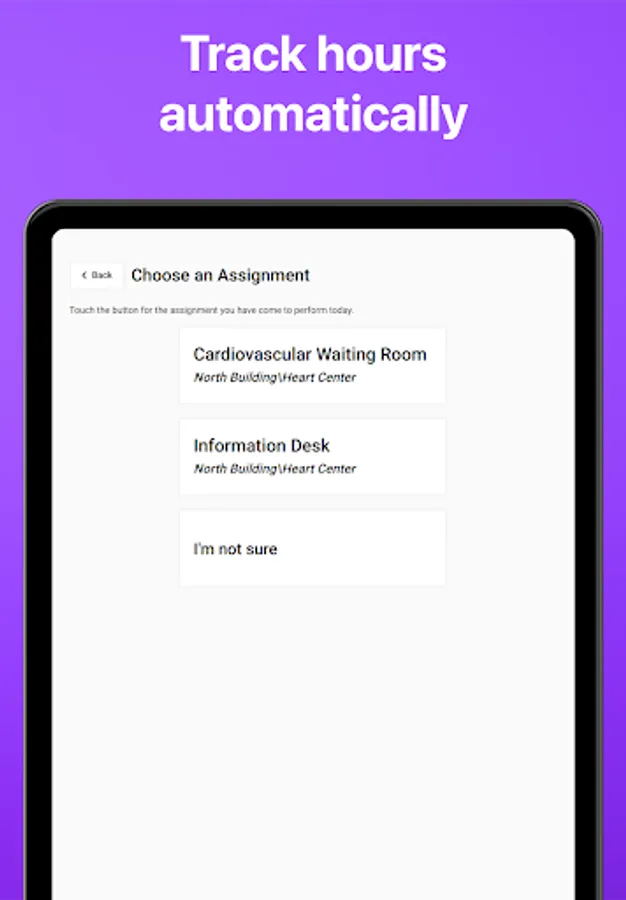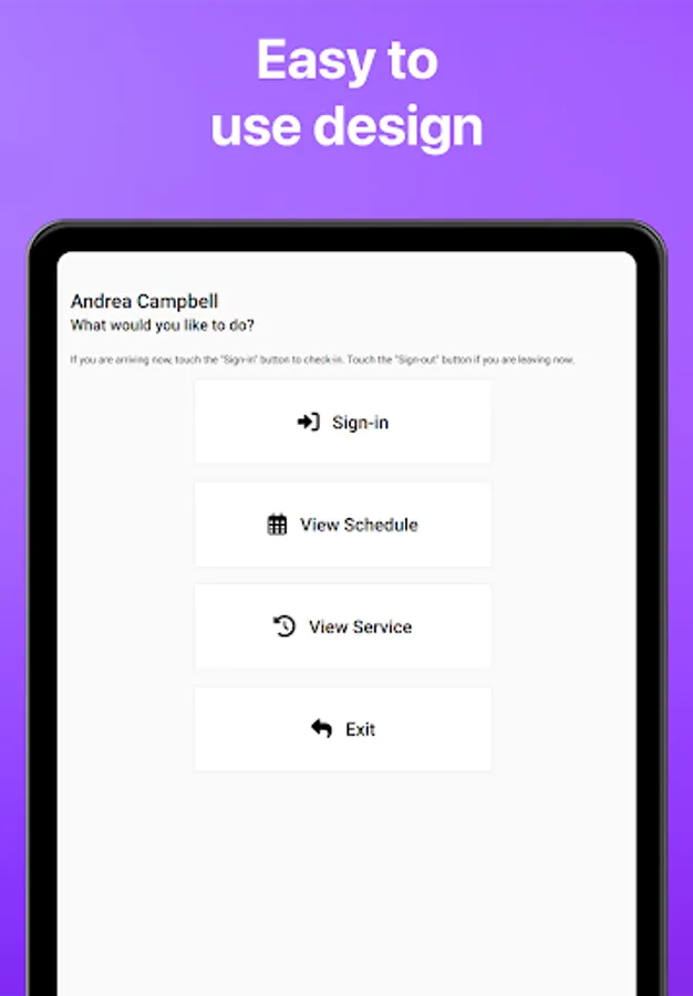 Organizations that use Volgistics can launch VicTouch on a shared tablet so their volunteers can clock in and out when they arrive and depart. Service hours are automatically added to volunteer records.