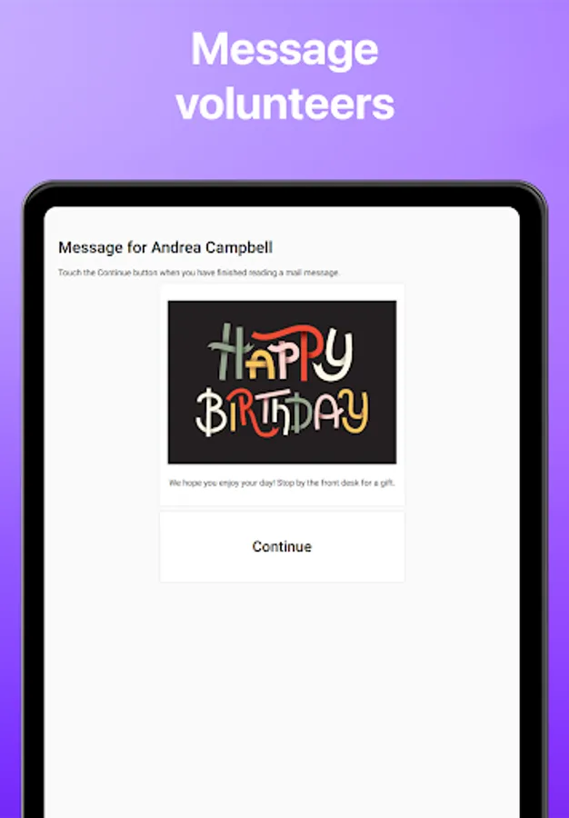 This app is used by the organization to set up the shared tablet.