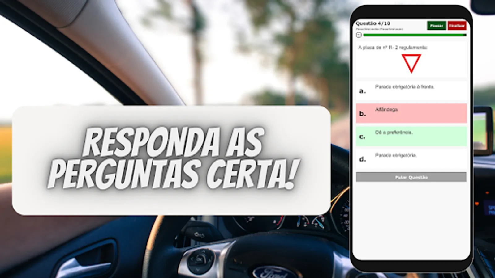 🤓 Test your knowledge in this question simulator for the theoretical test of the DMV / CNH. If you're short on time and would like a dynamic tool for your studies, check out this App.