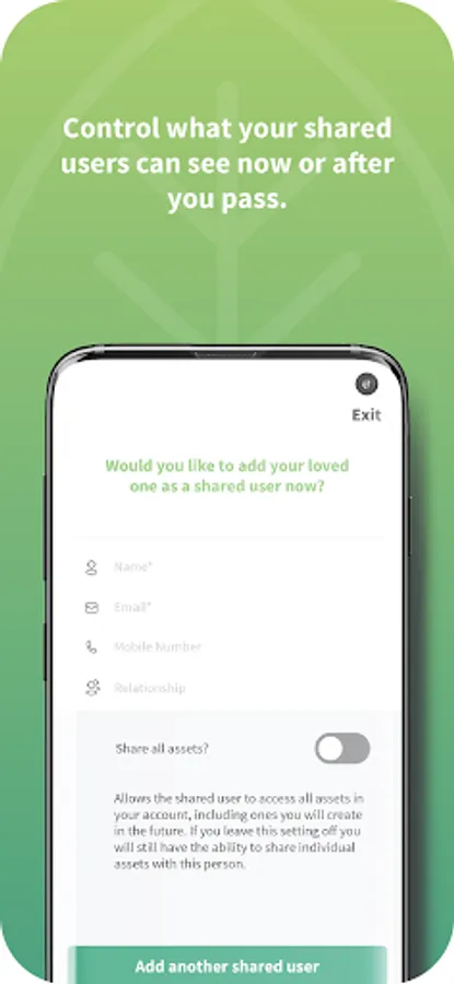 SHARE YOUR ASSETS WITH LOVED ONES AND CHOOSE WHEN TO REVEAL THOSE ASSET DETAILS; AT TIME OF DEATH OR WHILE YOU ARE ALIVE.