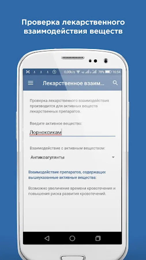 The functional of the application allows you to quickly check the drug interaction of active substances and preparations, simplifying the process of making prescriptions.