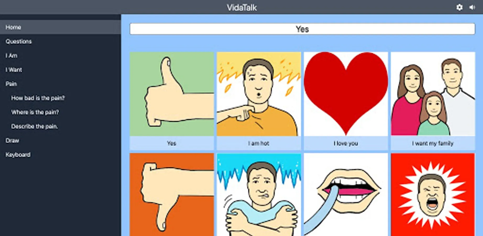 Speech solutions for long-term or chronic communication disabilities often fail to meet the unique needs of the healthcare environment and leave non-verbal patients unable to actively participate with their care. VidaTalk is an essential component of any critical care and equity, diversity and inclusion communication program. If you, a family member, or loved-one is hospitalized and suffers from speech or language barrier, be sure to download VidaTalk today!