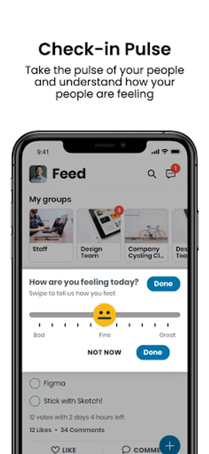 Daily Check In Pulse - Employers can keep track of overall employee happiness and respond quickly to any issues. Employees can give the organisation an indication of how they are feeling and prompt action in real time.