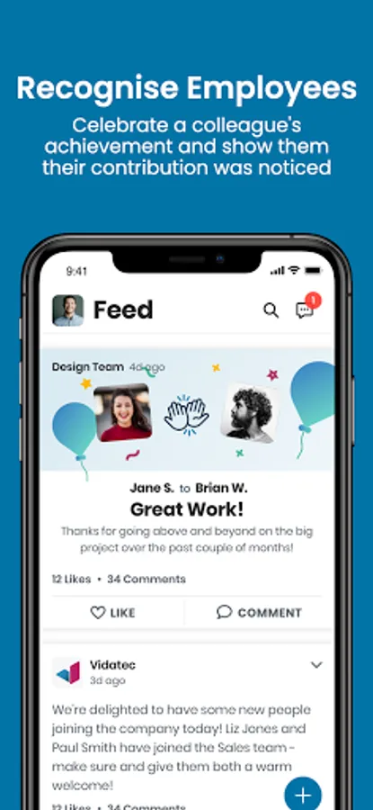 Community & Group News Feeds – Enable people to participate more easily and build connections with this central community hub. Newsfeeds are personalised to each user and encourage them to engage with groups, events and challenges across the organisation. Posts can be created by users and administrators, this feature acts as the central point for app interactions. Interact in a familiar way with comments, tagging, reactions and shares.