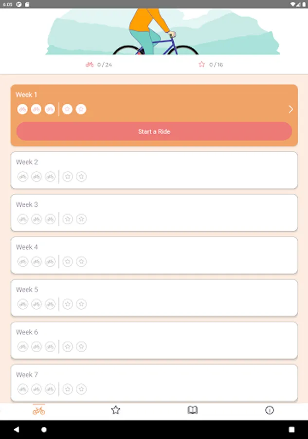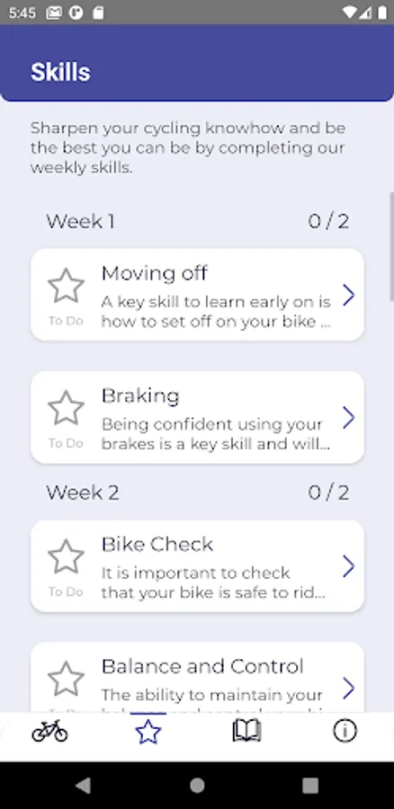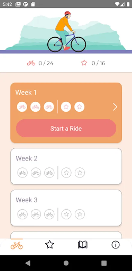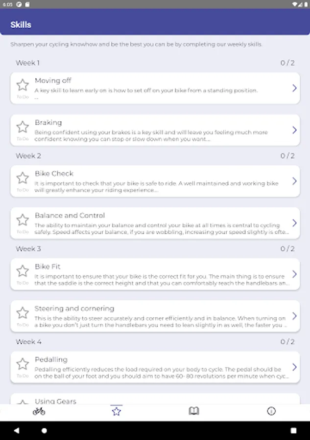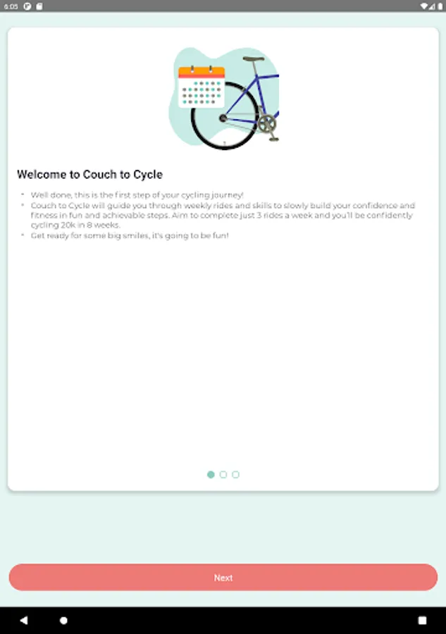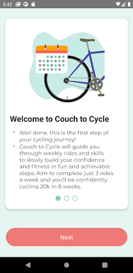 • The Couch to Cycle app works because it slowly builds your confidence and fitness in gentle, fun and achievable steps.