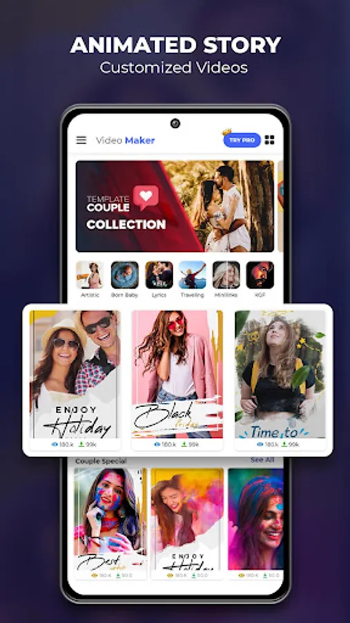 - Enjoy your animated story and post templates from a totally new Vide - Video Status Maker!