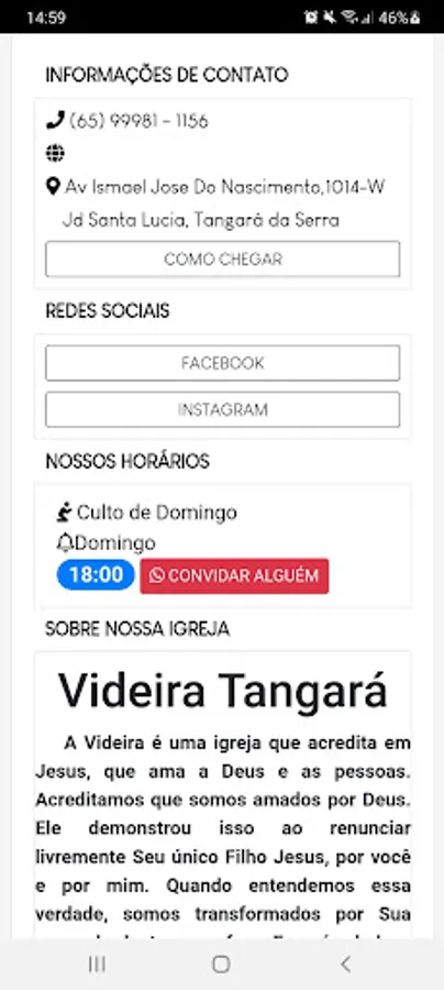 Application of the Vine Church of Tangará da Serra. With the new App all members, cell leaders, teachers and managers can now communicate more efficiently.