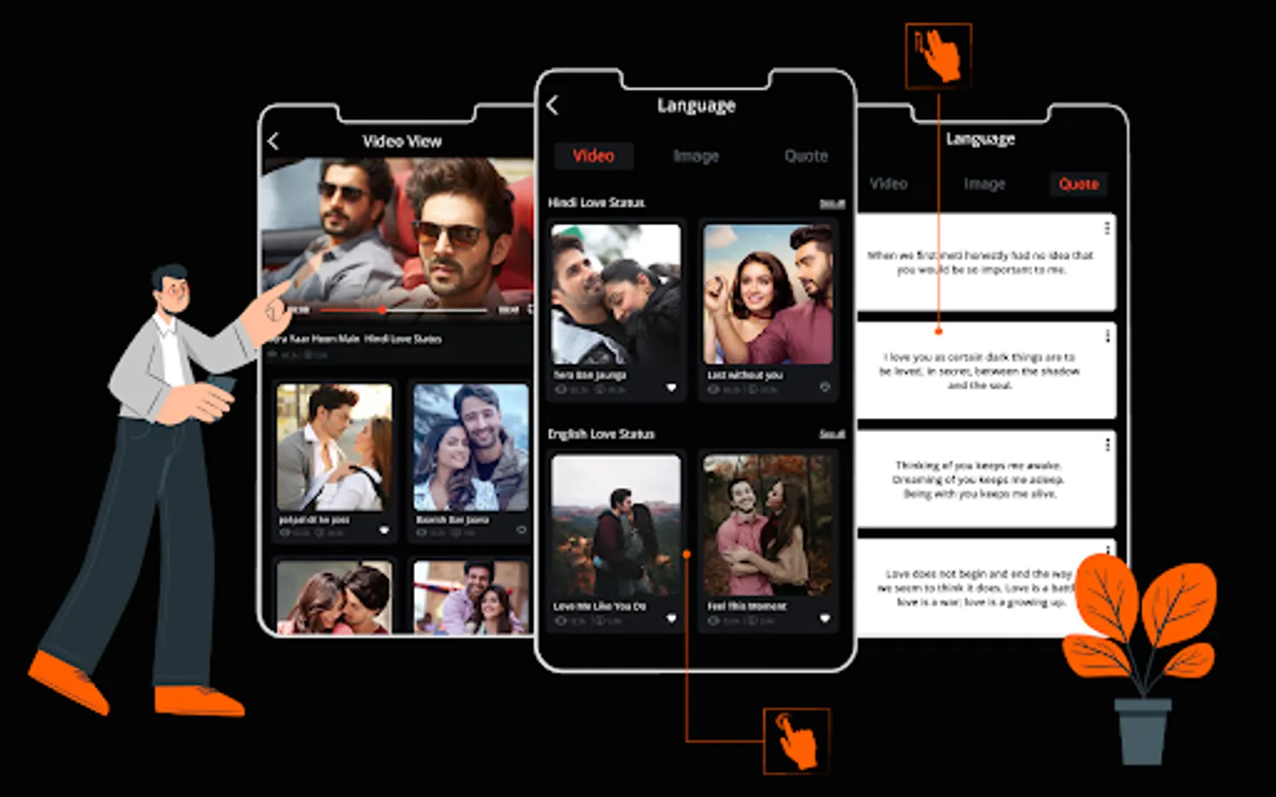 love Video Status - love Status app contains large number of short lyrical video status. You can download any lyrical video status you like or you can create your video with your own images. We have categorized all the videos for you so that you can easily find videos based on your mood.
