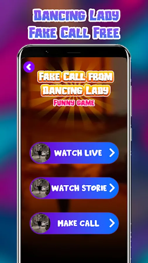 The Dancing Call & Chat Prank app highlights fake video call and chat functionalities, making you believe that it's the real Lady on the other end of the line! Imagine seeing your friends' faces when the Dance calls you!