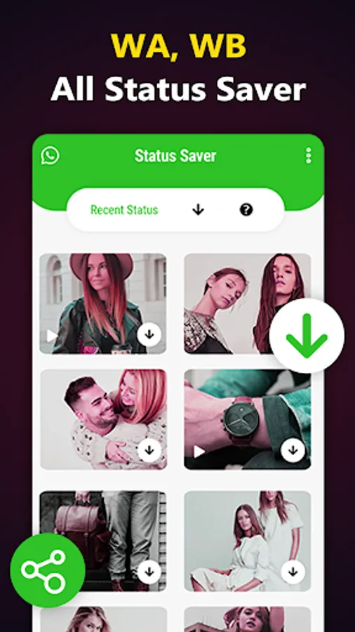 Our app also contains video status downloader for Wa & Wb. Images and Video Status Downloader app. Easily download video from WA and WB.