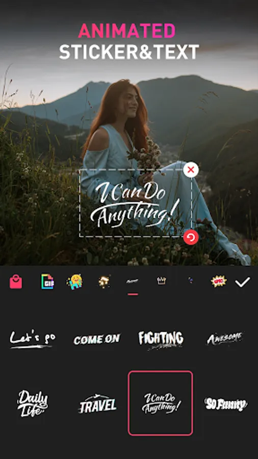 Access built-in animated graphics such as titles, stickers, and overlays. A variety of text fonts and stickers are waiting for you to discover. Change the color, size, font, and more to make them yours.