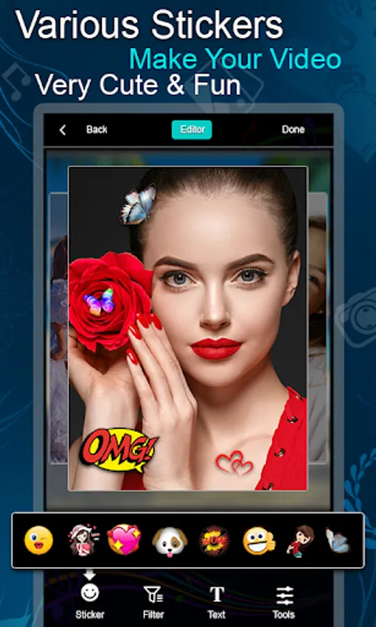 This application is a professional and strong Photos to movie making application. You can create your own video or clip to Free Video Editor with Music and Effects.