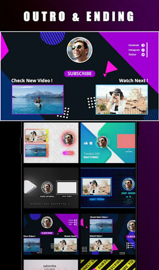 - Intro maker or Outro maker for both YT videos or YT shorts.
