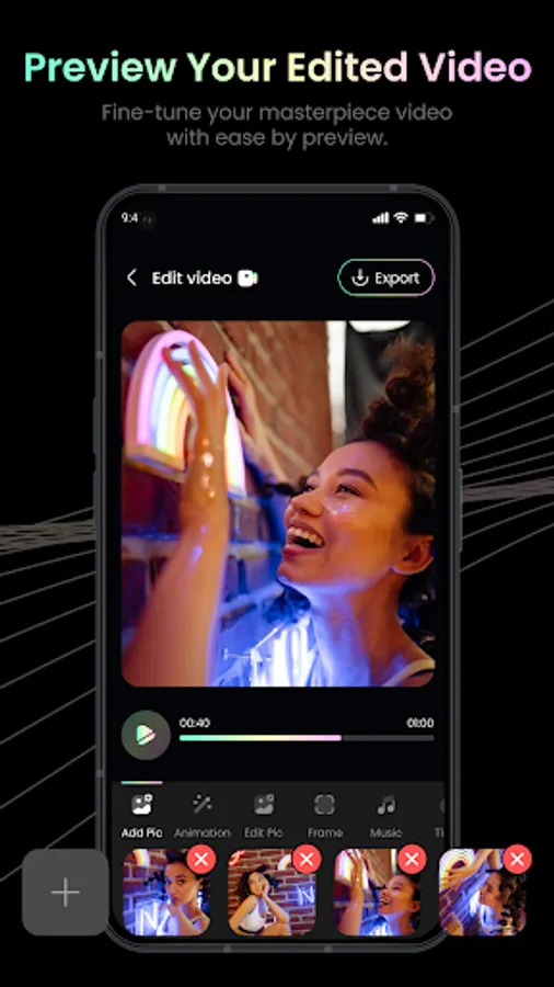Transform your photos into stunning videos with our easy-to-use photo to video editor. With video editor app, you can create beautiful slideshows with music, effects, and filters in just a few taps. Video editor app offers a variety of features that will help you turn your photos into memorable videos that you can share with your friends and family.