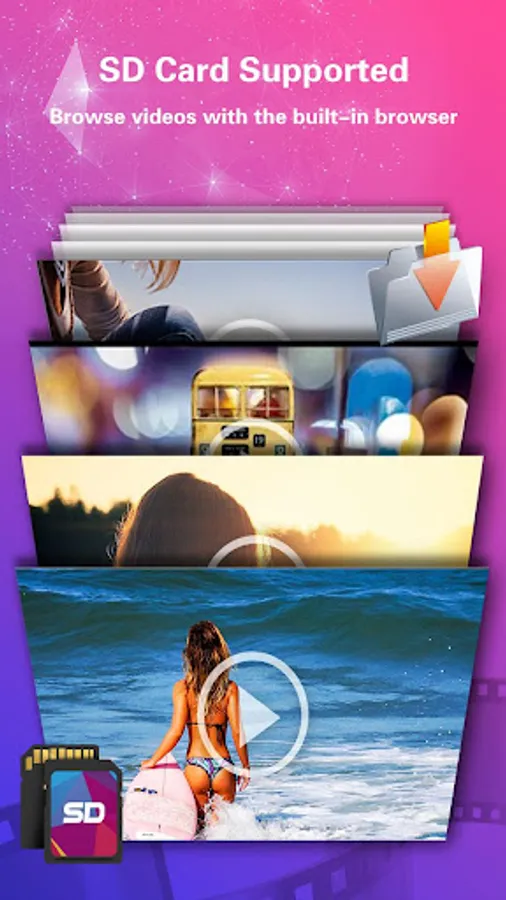 ● Play videos offline with the built-in player,