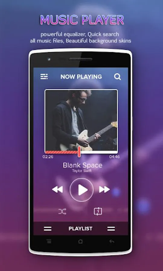- Custom Playlist, set albums, artists, genres, folders songs to playlist.