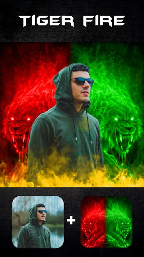 With template what you need to do is choose a picture. We have many style template, all-in-one : neon effect, drip art effect, tiger fire, magic effect...