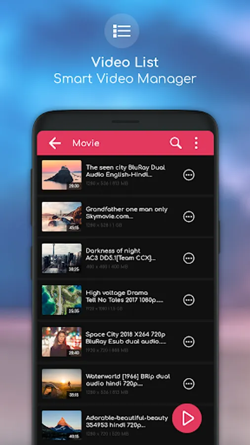 ✔ Scan all video files from device and sdcard automatically.