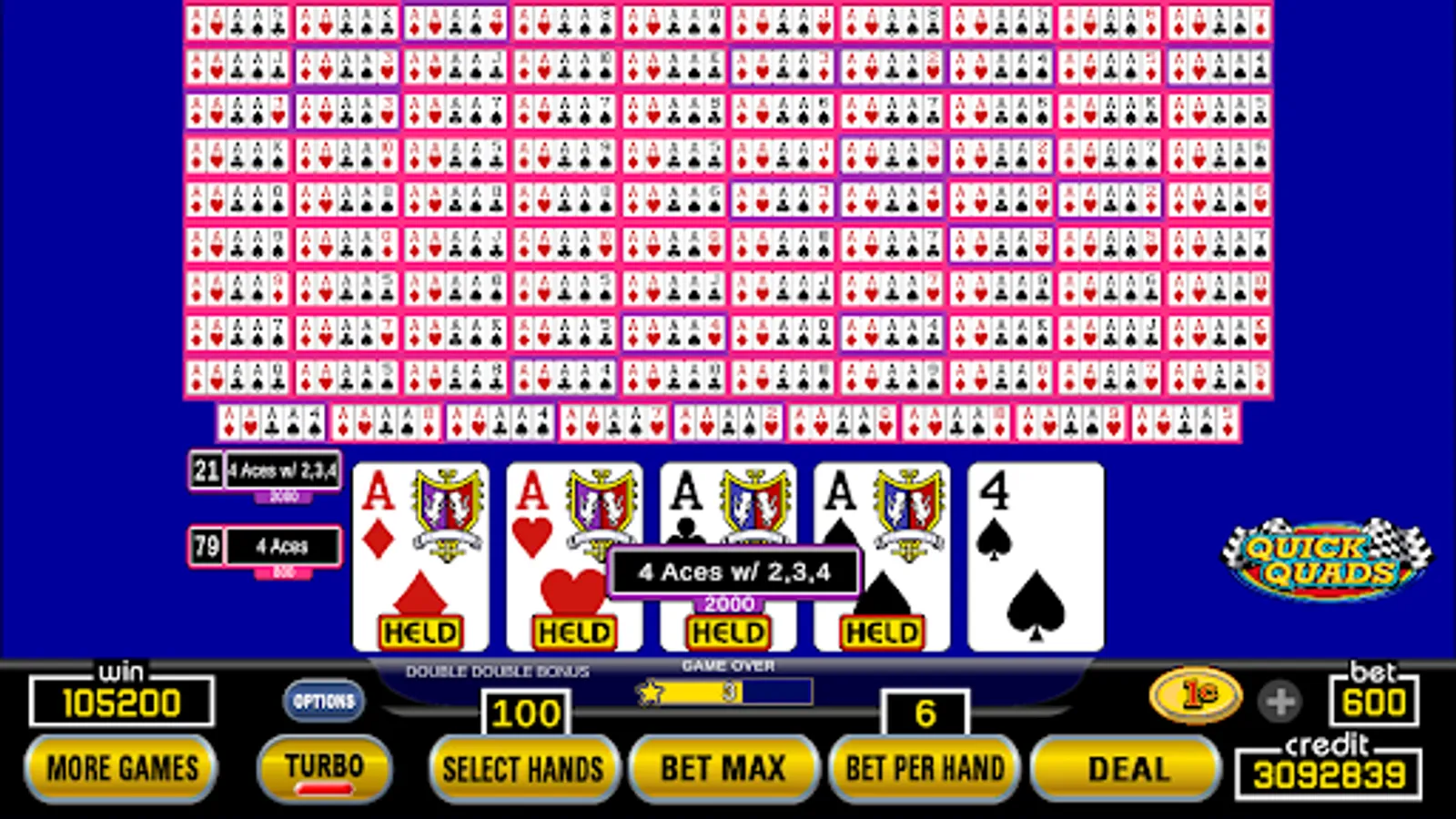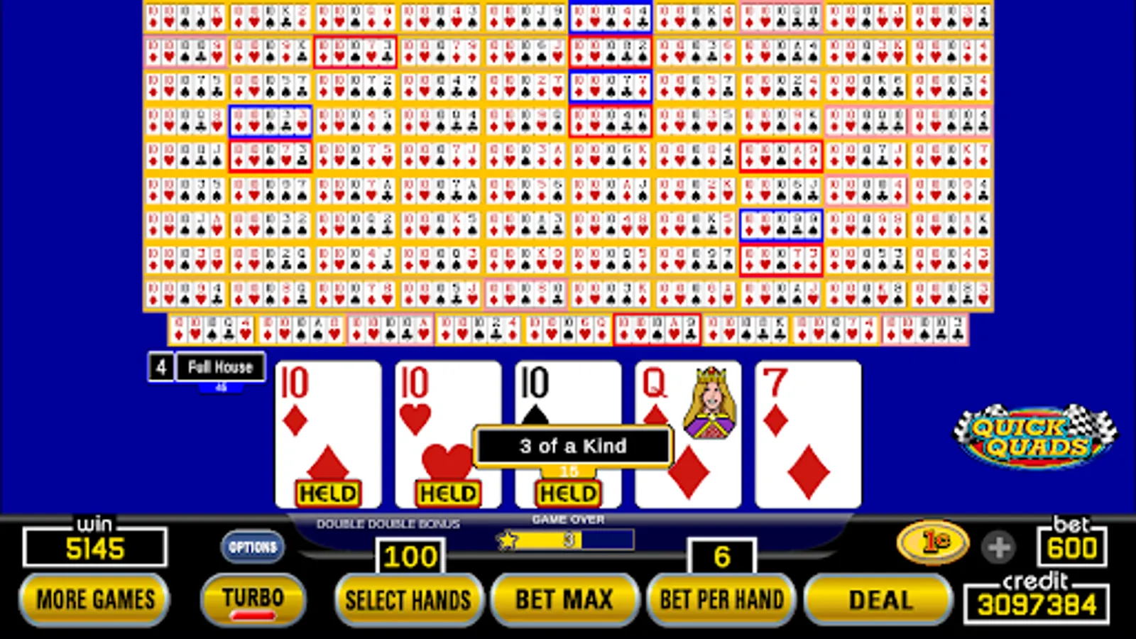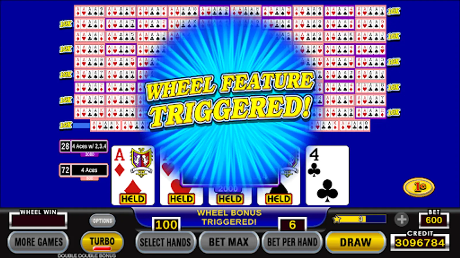 This is THE original video poker classic from casinos. Play all your favorite deluxe classic games Quick Quads, Hundred Play and 100 Wheel poker.