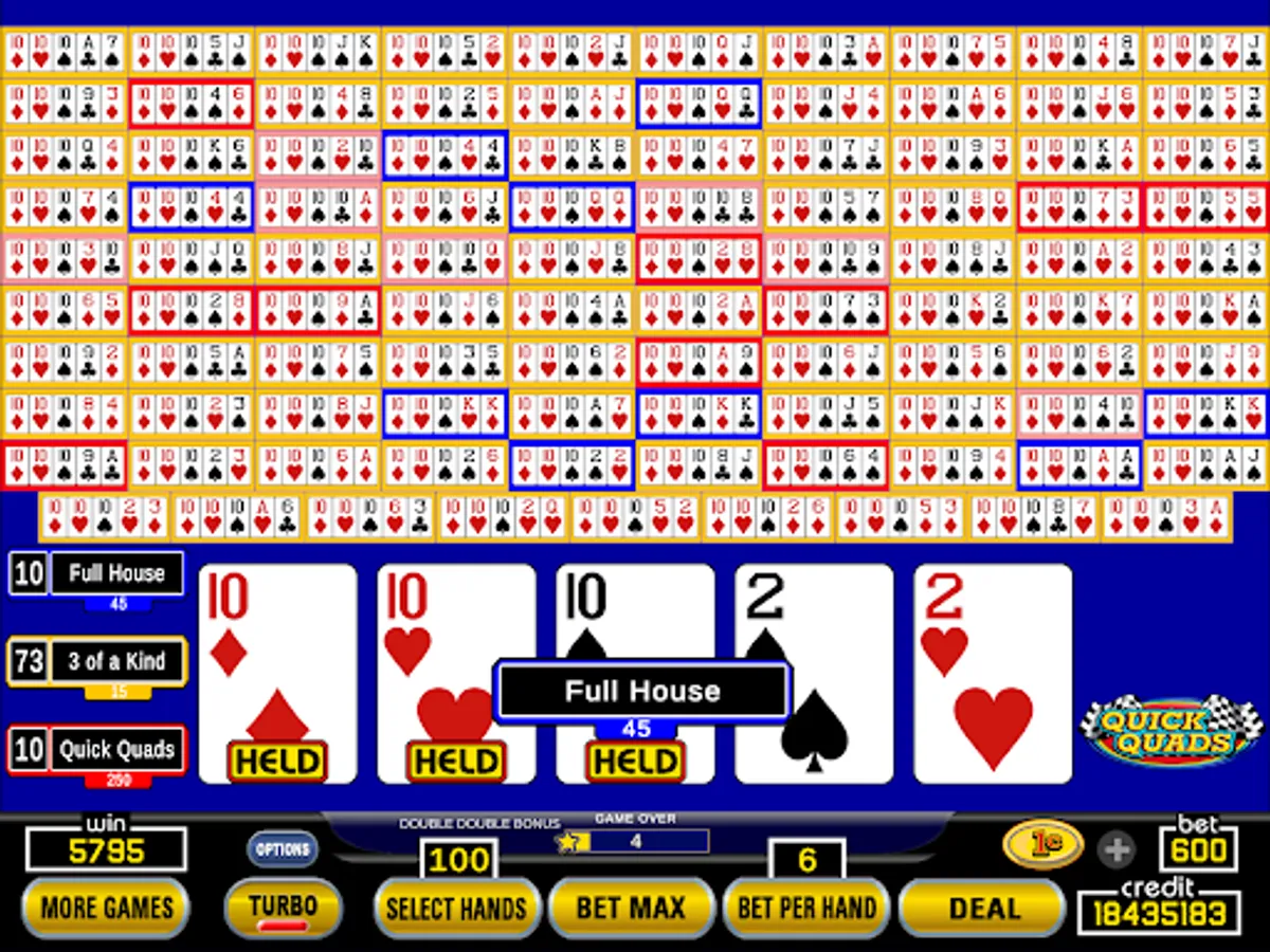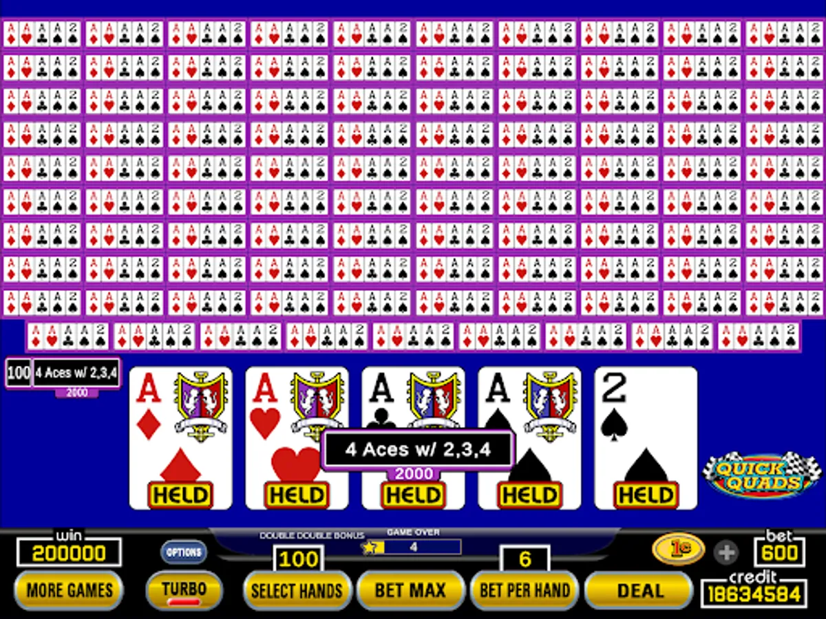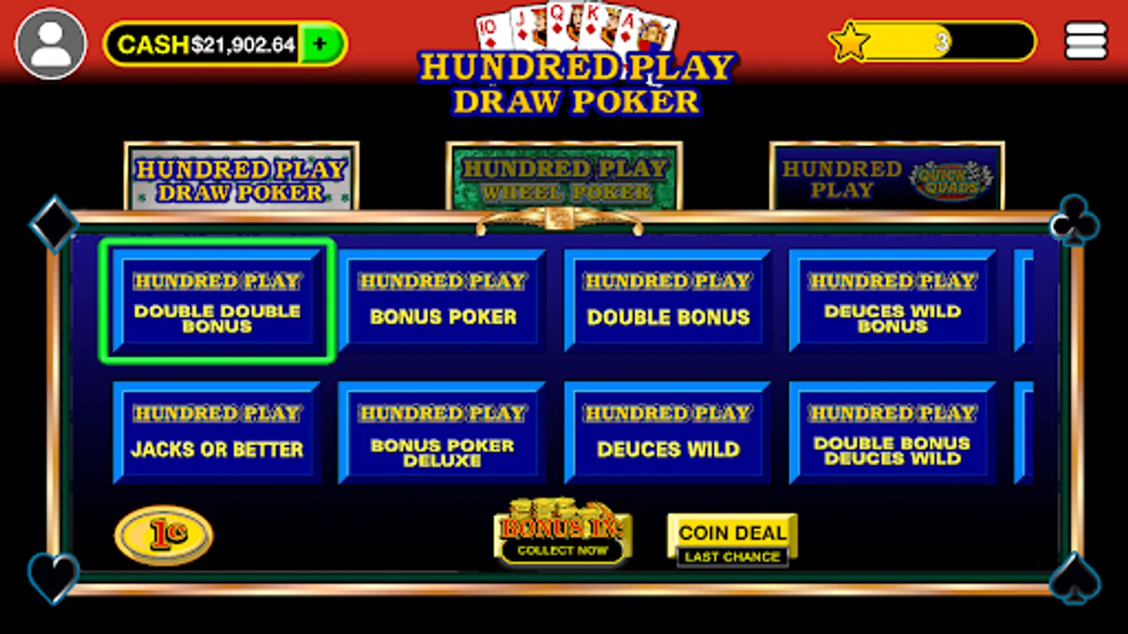 This is THE original video poker classic from casinos. Play all your favorite deluxe classic games Quick Quads, Hundred Play and 100 Wheel poker.