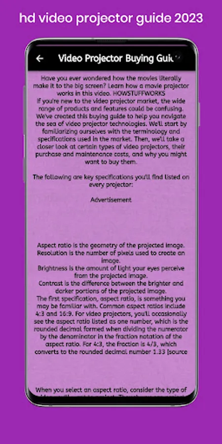 There are several things to consider when purchasing a high-definition (HD) video projector, and here are some tips and advice to help you find the right one: 1- Resolution: You should look for a display with a resolution of up to 1080p (Full HD) or 4K to get a clear and true-to-life picture.Our High Definition (HD) Video Projector Guide is a useful guide for anyone looking for a projector that meets their needs. The guide contains a set of tips and instructions to help you choose the right device, and these tips include resolution, brightness, contrast ratio, size, weight, ports, cooling fan, speakers, price and brand. These tips are intended to help you find a high-quality, excellent-performing projector that fits your budget and needs. These tips also outline the most important factors to consider, such as resolution, brightness, contrast ratio, size, weight, ports, cooling fan, speakers, price, and brand. This guide is useful for people who want to purchase a video projector, whether they are using it for home entertainment or business purposes. With these tips and advice, people can make the right decision and get the best value for money.In this app you learn HD video projector guide in four steps. Most of the people ask me sir HD video projector guide. so this app is here HD video projector guide is an app for all devices