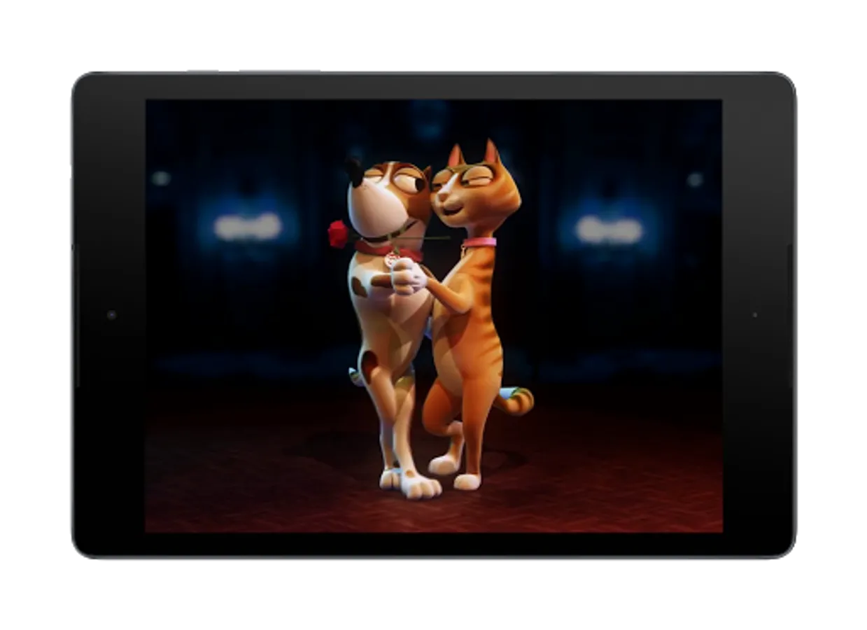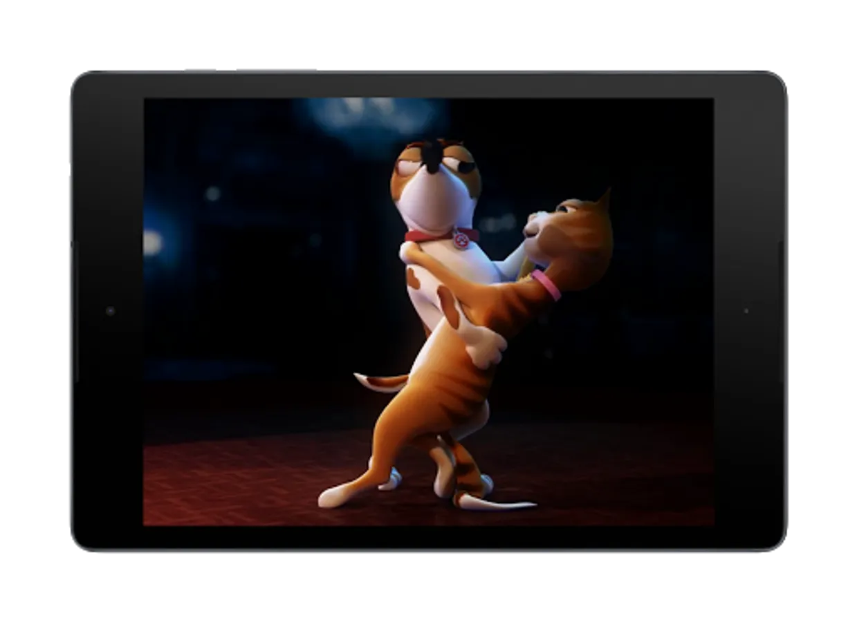 Funny dog and cat dancing the tango and samba on the screen of your device