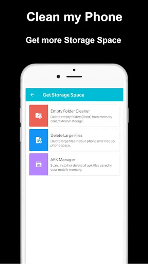 The Junk Files Cleaner can list all large files on your device and you can delete some useless files. it is also a APK installer and uninstaller. With this tool you can manage your APK files easily and quickly.
