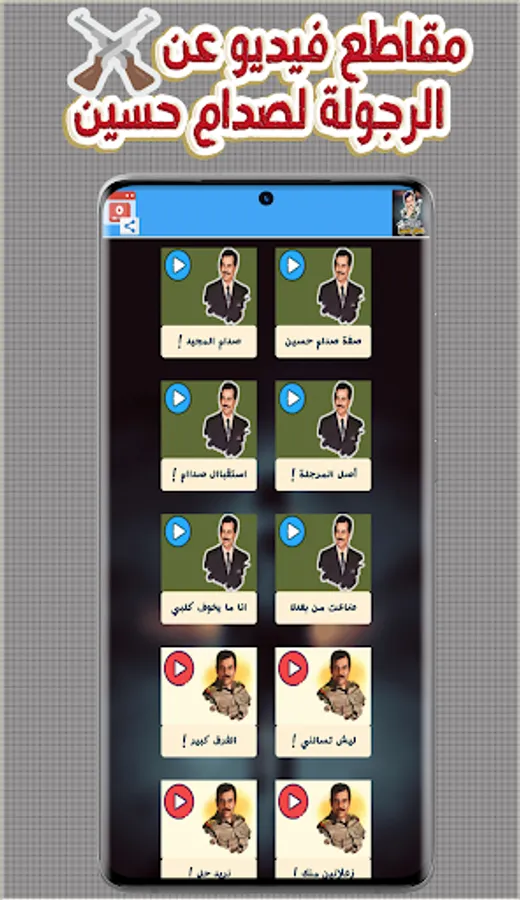 Using video design programs, specifically using the latest video design program, we designed short videos of Saddam Hussein. These video clips contain quotes, sayings, and short judgments that Saddam Hussein said. These WhatsApp cases also contain proverbs and judgments, short and beautiful judgments, and influential judgments that are all transmitted. About President Saddam and will explain to you the story of Saddam Hussein.