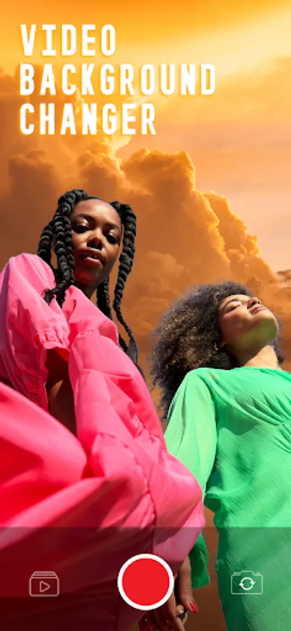Green screen effect has two modes of the camera, selfie camera and back camera, one tap to switch between them, you can change the background of your video selfie as well as back camera.