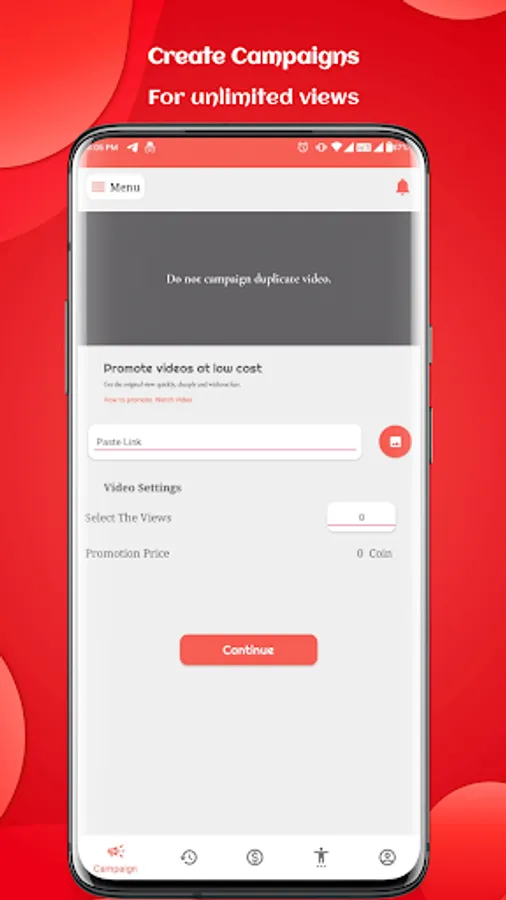 To add your video , you just have to copy your video link and we will show that video that can be promoted. Please note same video cannot be added again. You can although promote it again by using the earned virtual currency.