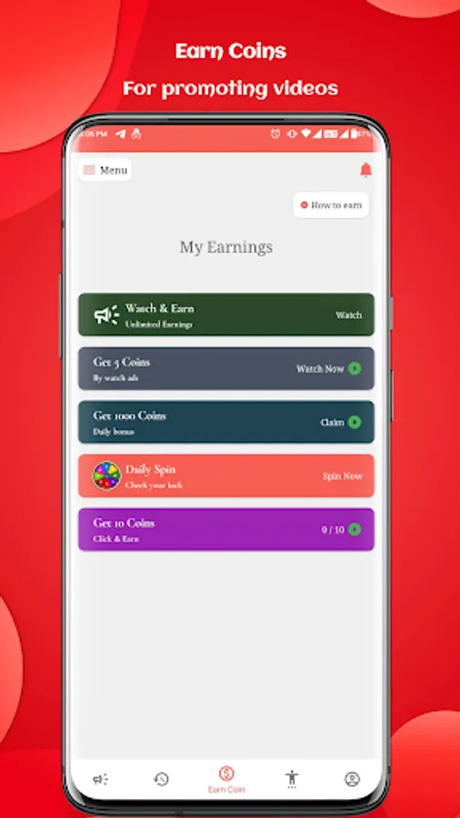 Redeem your virtual currency to promote your own videos which will be watched by others.