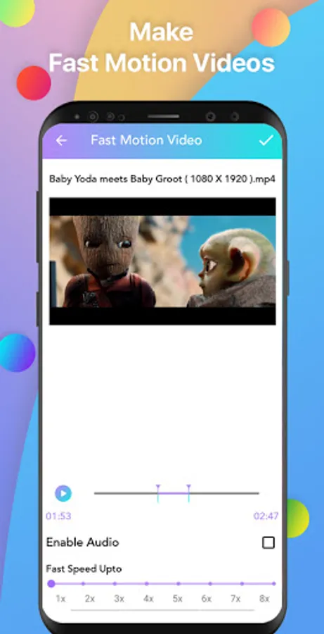 Fast motion Effects: You can make your favorite videos in fast motion effect and save them on your mobile