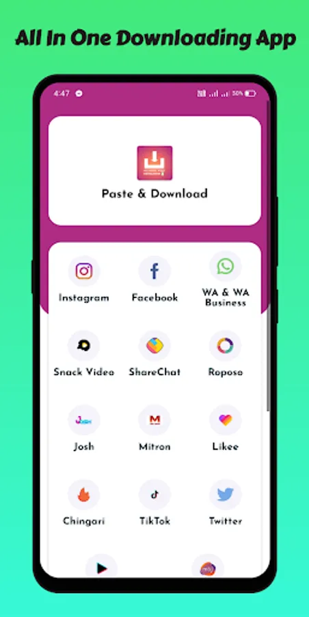 Download any social videos/images from instagram ,whatsapp,facebook,josh,snack video,sharechat,ropso,mitron,likee,chingari,tik tok,twitter,moj etc...in HD quality and copyight free videos/images Without watermark with the help of "PASTE & DOWNLOAD"