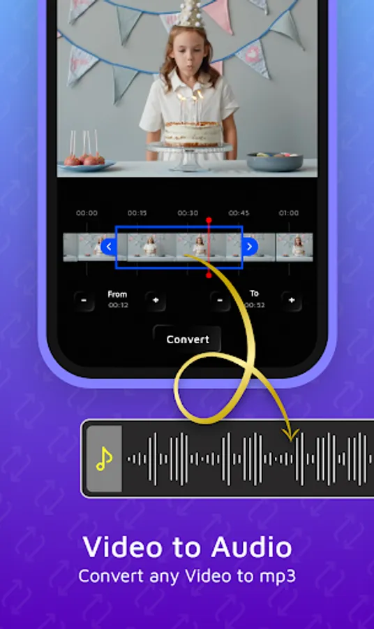 Quickly convert videos to audio files. It has become increasingly popular among people interested in extracting audio from video files. Perfectly designed to extract audio from video files. Video to Audio Converter is an excellent tool to extract audio from large-sized video files. It allows you to quickly convert MPEG files to MP3, AVI to MP3, and MPEG to M4A.