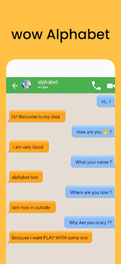 this app the ALPHABET and chat with him! will allow you to receive a call from your favorite scary character letters F