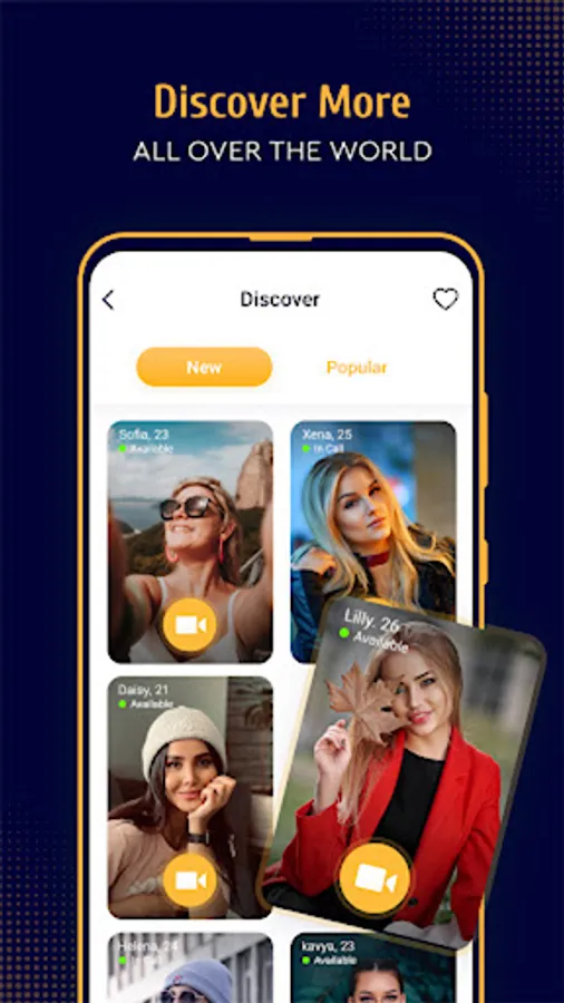 Discover and connect with new people through video call and explore them with chit chats on messages.Meet new people from all over the world with just single tap you can connect video call using (3G, 4G, Wifi), you can even connect on low data speed.