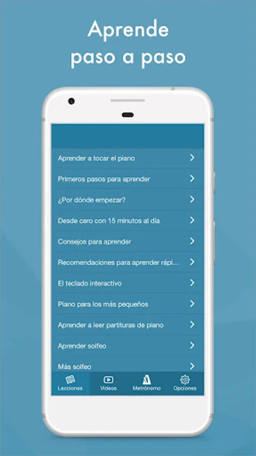 Learn to play the piano step by step with more than 500 video tutorials in Spanish in a fun and effective way, and a metronome included!