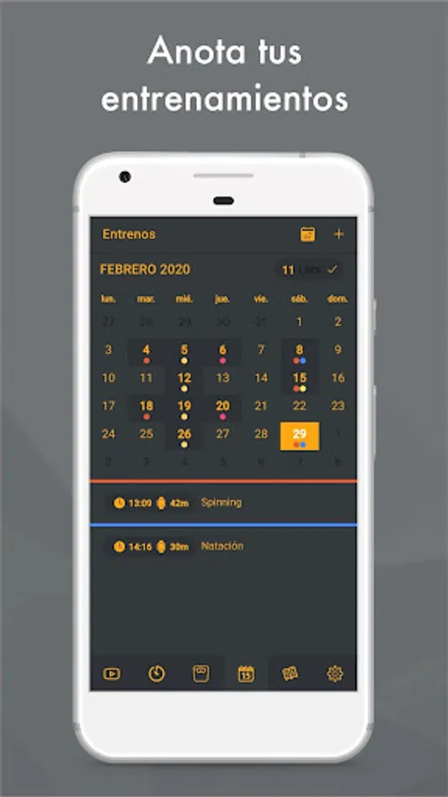 Anota todos tus entrenamientos en el calendario y haz un seguimiento semanal y mensual de todos los entrenamientos que has realizado.