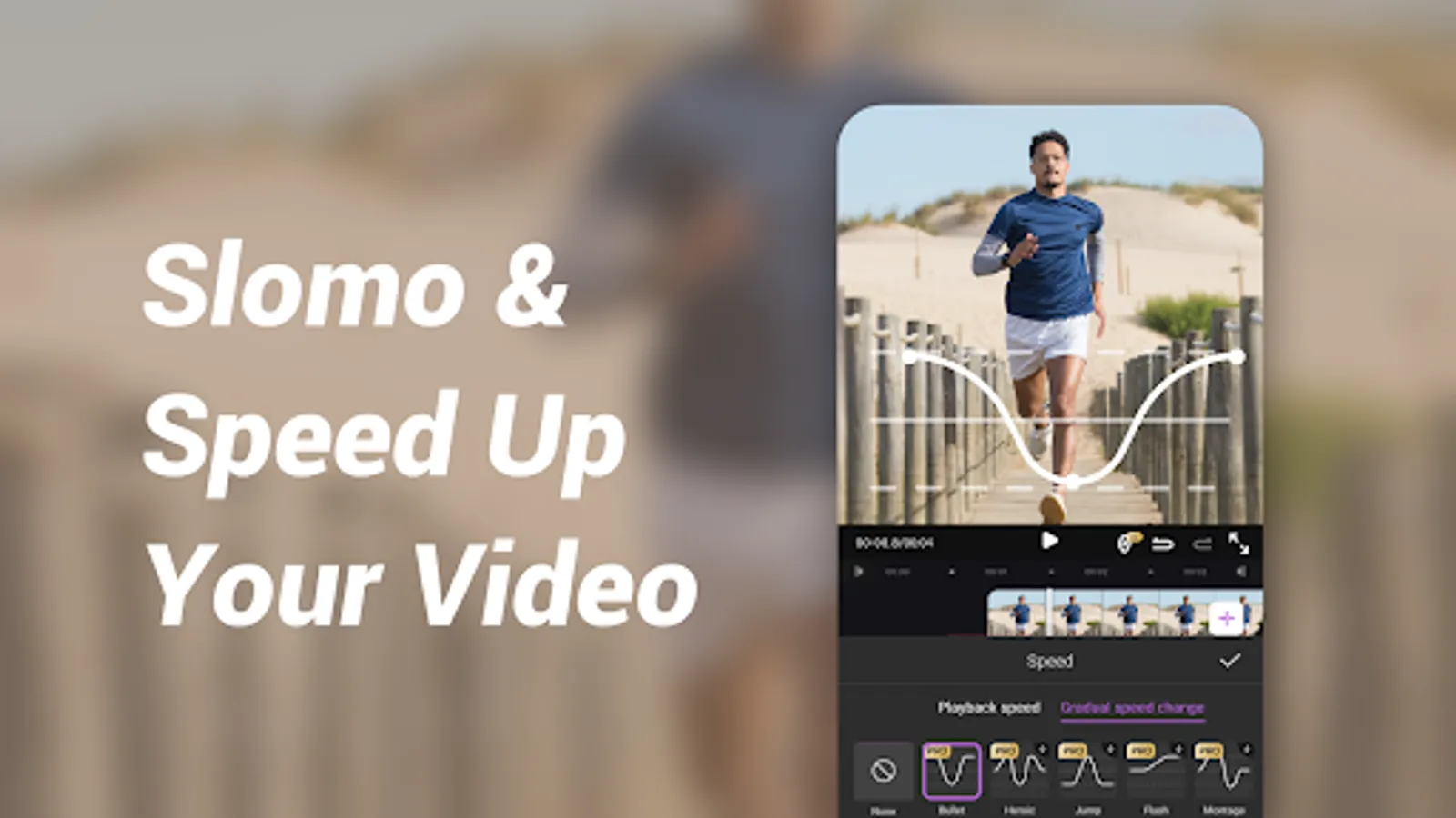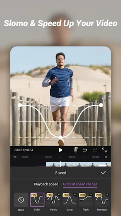 •Speed(playback speed & gradual speed).Make slow motion and make the video speed more smooth.