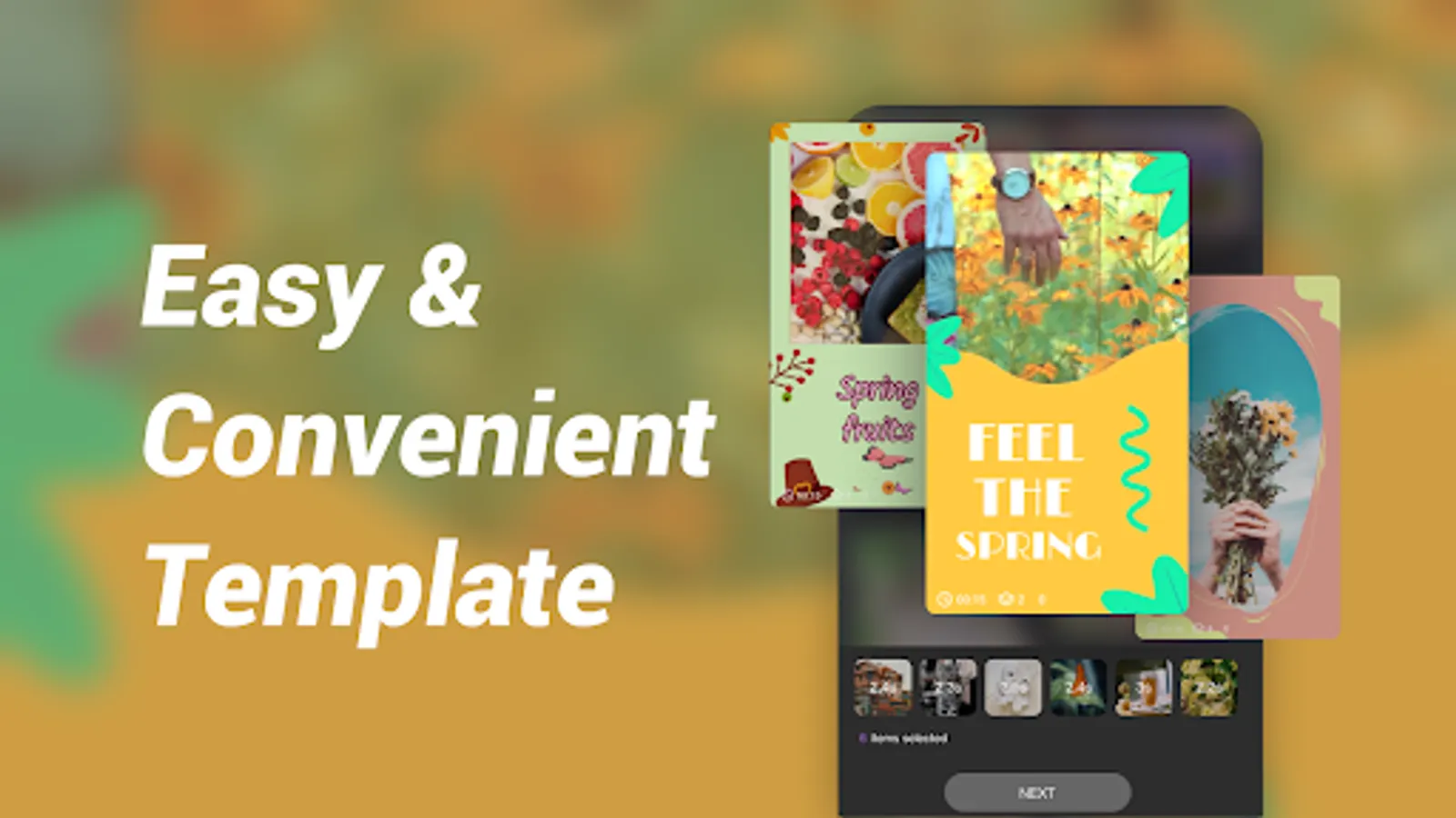 •Template.Apply a ready-made template to your video.Import local clips and make them into a template video.