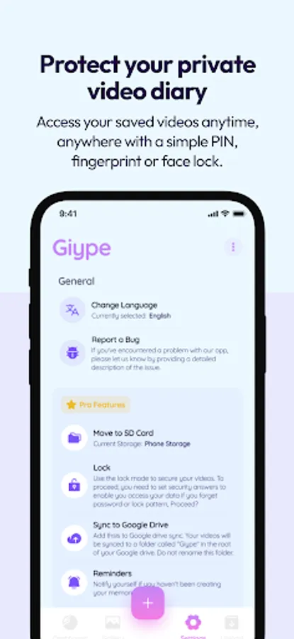 - Secure your Giype Journal with your fingerprint, pattern, or a password.