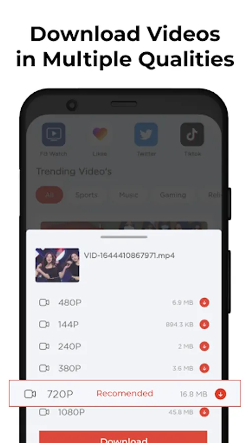 Simply search, play, and fast download video from social media websites. Private downloader lets you download your favorite videos in high quality. Don’t skip watching or saving trending videos available in the web downloader app.