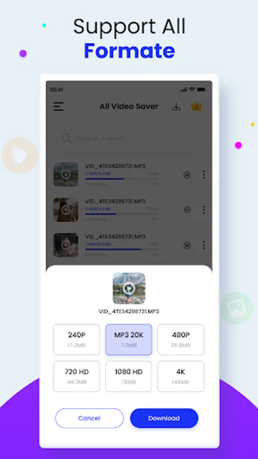 All-in-one video downloader app can download all format videos with just one click. Enjoy your favourite video with this all video downloader & video saver. All video downloader support HD format. You can download videos in HD format and enjoy watching tha video.