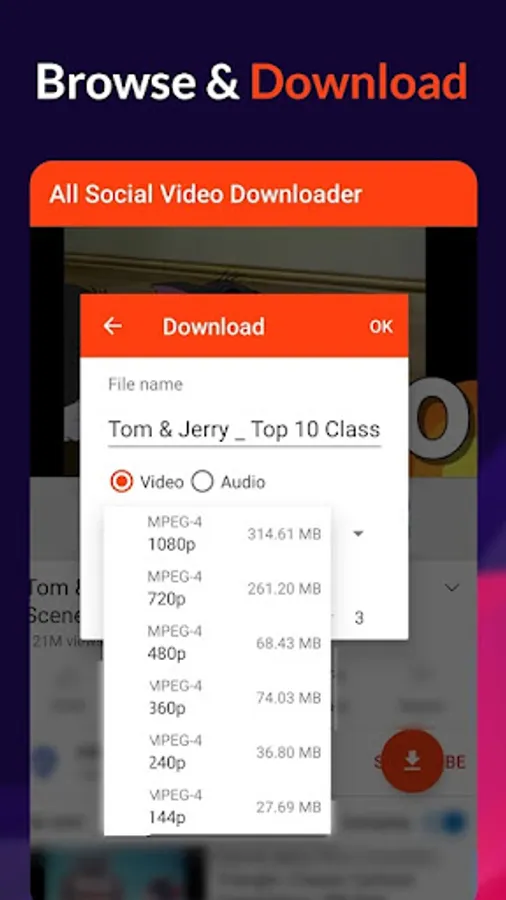 ⚡ HD video downloader app auto detects videos, you only need to click the download button. Pause, resume, or remove downloads as you like.